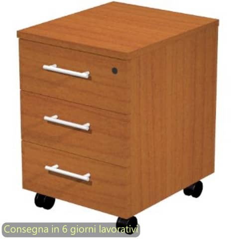 Cassettiera a 3 cassetti della serie Presto, una linea economica ma caratterizzata da soluzioni tecniche di livello superiore. Cassetti scorrevoli su guide metalliche con fermo a fine corsa, di cui il primo fornito anche di serratura. Con ruote pivotanti, smontata e senza freno.
