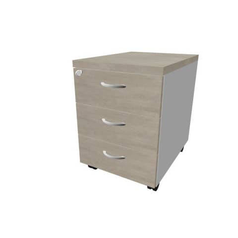 Cassettiera Practika a 3 cassetti. Frontali in pannello di conglomerato ligneo spessore 18 mm, rivestito su entrambi i lati con pannello melaminico antiriflesso, antigraffio e lavabile. Bordatura sui 4 lati in ABS antiurto, in tinta, spessore 1,5 mm. Cassetti in pannello di conglomerato ligneo spessore 12,5 mm, piegato in folding, rivestito in PVC colore argento con fondo in MDF (Medium Density Fiberboard, un pannello di fibra a media densit?, un materiale ecologico) spessore 8 mm verniciato argento. Guide in metallo a scorrimento su rotelle con fermo fine corsa. Serratura con chiave pieghevole antifortunistica a chiusura simultanea e antiribaltamento. Ruote piroettanti in nylon e perno in acciaio. Struttura argento e finiture di colore cemento. Dimensioni 42x56xH.58 cm. Quadrifoglio Sistemi d’Arredo presta particolare attenzione alle tematiche della qualità , dell?ambiente e della sicurezza per fornire un prodotto e un servizio all?altezza delle aspettative del mercato. L?azienda ha raggiunto le certificazioni UNI EN ISO 9001/2015, UNI EN ISO 14001/2015 e UNI EN ISO 45001/2018. Nel rispetto e nella tutela dell?ambiente, i prodotti Quadrifoglio sono certificati e garantiti da FSC? e PANNELLO ECOLOGICO.