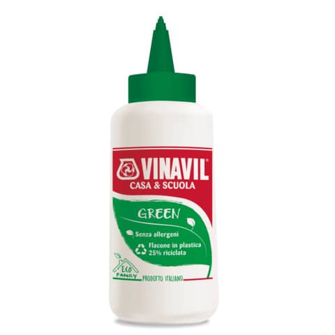 La nuova colla vinilica per ogni esigenza creativa, sia a casa che a scuola. Tecnicamente adesivo aceto vinilico. Vinavil Casa&Scuola – un collante privo di allergeni e dermatologicamente testato, particolarmente adatto per incollare legno, carta, tela, sughero e materiali porosi. Il flacone da 750 g – stato progettato per consentire un?eccellente presa ergonomica, grazie alle due scanalature laterali che ne facilitano l?impugnatura e la spremitura. Dopo la rimozione della linguetta, applicare la colla direttamente dal beccuccio o svitando il tappo alla base. Per evitare l?essiccamento della colla nel beccuccio, chiuderlo bene con il tappino aggiuntivo connesso al corpo del tappo stesso.