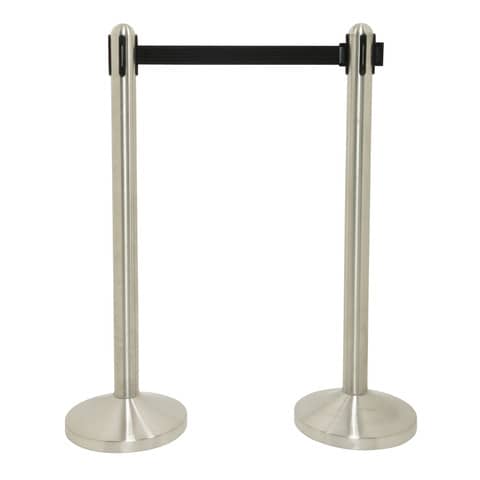 Colonnina segnapercorso Securit® in acciaio – nastro retrattile 2,1 m²nero – 101x51x51 cm – RS-RT-RVS-BL-SET