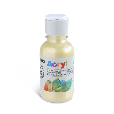 Colore acrilico fine in bottiglia in PET da 125 ml, con tappo dosatore. – un colore ad acqua ad alta concentrazione di pigmento ed emulsione acrilica, di alta qualità , opaco e molto coprente che una volta asciutto – permanente. Si stende facilmente e asciuga in bella superficie rimanendo elastico, di tono vivo e luminoso, piacevole al tatto e resistente. – utilizzabile su qualsiasi substrato, si presta bene alle attività pittoriche proprie di questa tecnica versatile e ricca di possibilit? creative. – adatto a tecniche decorative e hobbistiche quali il d?coupage. – applicabile sulle pareti mediante stencils. I risultati sono di ottimo effetto e durata. Le tinte disponibili in gamma utilizzate pure offrono colori intensi e d?effetto. Colore oro.