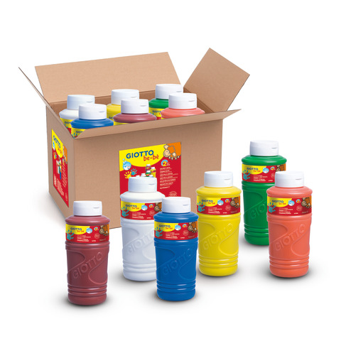 I set Giotto be-b? colori a dita nascono da un progetto didattico rivolto alle scuole materne e primo ciclo delle elementari. Ognuno presenta una selezione di colori ed una guida didattica digitale accessibile tramite QRcode; la scelta della gamma cromatica per ogni set, così come i percorsi didattici, sono stati studiati e realizzati da Francesca Valan, docente universitaria e color designer specializzata nello studio del colore. Confezione da 6 flaconi di colori a dita da 750 ml.