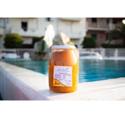 Il vasetto di vetro contiene 1,260 kg di prodotto NETTO, con 90% minimo di frutta SENZA CONSERVANTI.