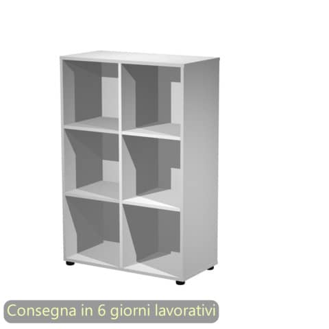 Contenitore 6 caselle a giorno grigio. Dimensioni: 80x40xH.121,6 cm. Top spessore: 18 mm. Fianchi, ripiani e base spessore: 18 mm . Dietro spessore: 10 mm. Ante spessore: 18 mm .Materiale bilaminato nobilitato melaminico spessore conforme norme UNI e EN classe E1, antigraffio ed antiriflesso. Programma di contenitori a 6 caselle allestibili a giorno oppure con ante complete di serratura. Ideali sia per l?archiviazione di documenti che in tutti quei contesti in cui – opportuno offrire la possibilit? di lasciare oggetti personali custoditi all?interno di un vano chiuso a chiave. Il design delle ante permette, anche da chiuse, di inserire documenti all?interno della casella. Utilizzabile anche come casellario. Le singole caselle misurano 372×372 mm (L x H) e complete di ante hanno una profondità utile di 366 mm. Dotate di piedini livellabili in altezza. Disponibile nelle seguenti colorazioni. Struttura: 3-bianco e grigio alluminio. Ante: bianco, rovere, grigio alluminio, rosso, verde e viola scarlatto.