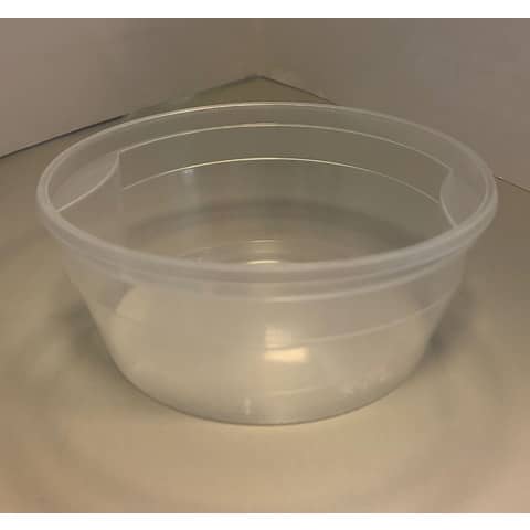 Contenitore trasparente in polipropilene 500 ml. Confezione da 50 pz. Adatto al contatto con alimenti a Max 100°C per 15 minuti. No grill. Reuse. Diametro superiore: 127 mm. Diametro inferire: 118 mm. Altezza: 68 mm.