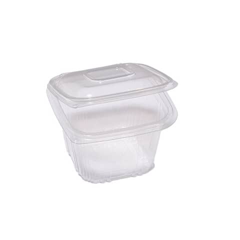 Contenitori quadrati Cuki Professional in polipropilene con coperchio incernierato, linea gastronomia a caldo. Dimensioni 120 mm x 120 mm x 75 mm. Confezione da 50 pezzi.