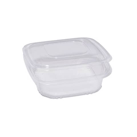 Contenitori quadrati Cuki Professional in polipropilene con coperchio incernierato, linea gastronomia a caldo. Dimensioni 185 mm x 185 mm x 52 mm. Confezione da 50 pezzi.