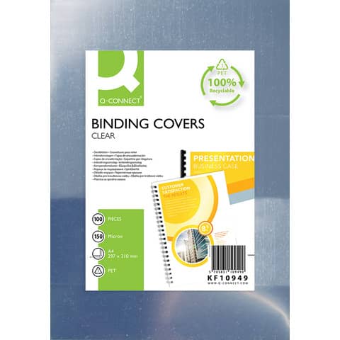Copertine lucide per rilegatura Q-Connect in PET A4 150 micron – conf. 100 pezzi – KF10949