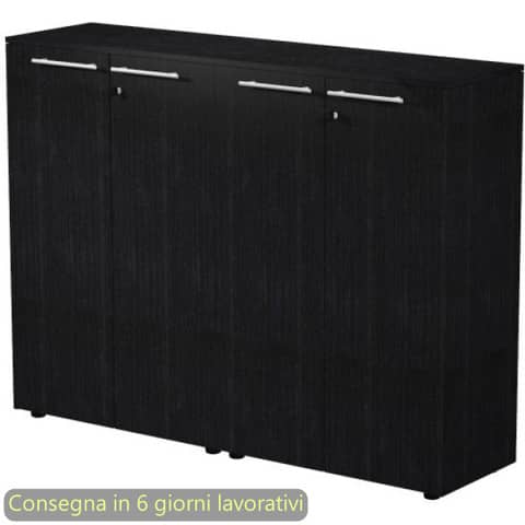 Coppia armadi medi con ante melaminico con serratura. Top e fianchi di finitura con spessore 14 mm. Colore: nero venato frassino. Dimensioni: 162,8x43xH.119,8 cm. Produzione interna Artexport della parte in legno certificata Iso 9001. Certificazioni FSC e PEFC. Imballi totalmente in cartone per un facile riciclo, a basso impatto ambientale.