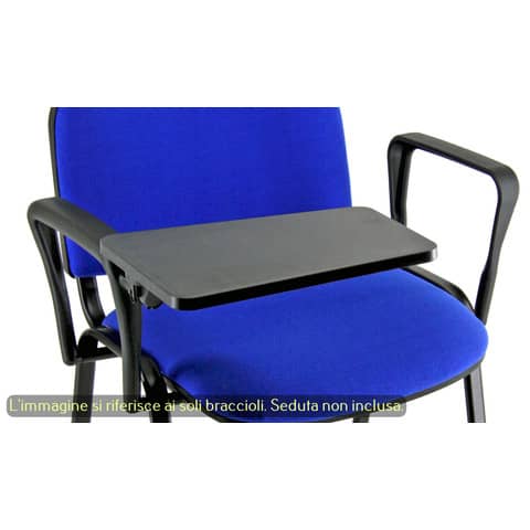 Coppia di braccioli fissi con tavoletta (dx) di forma trapezoidale B. 26 x b. 20 x H. 34,5 cm. Braccioli di forma squadrata. Colore nero. Compatibile con sedute Unisit modello Dado D52P, Dado D52PT, Dado D5P2P, Dado D5P2PT, Dado D53P, Dado D53PT, Dado D5P3P, Dado D5P3PT, Dado D54P, Dado D54PT, Dado D5P4P, Dado D5P4PT, Dado D55P, Dado D5P5P, Dado D5B, Dado D5C, Dado D5G, Dado D5N, Dado D5S, Dado D5CN, Dado D5L, Dado D5PC, Dado D5PG, Dado D5PS, Milk MKPS.