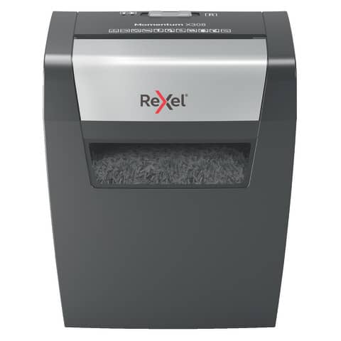 Il potere di distruggere di più! Rexel momentum X406 distrugge fino a 6 fogli per volta con un ciclo di lavoro continuo di 3 minuti che lo rende ideale per l’uso a casa. Livello di sicurezza P4 con taglio a frammenti da 4×30 mm. Capacit? del cestino da 15 litri (125 fogli A4). Colore: grigio.
