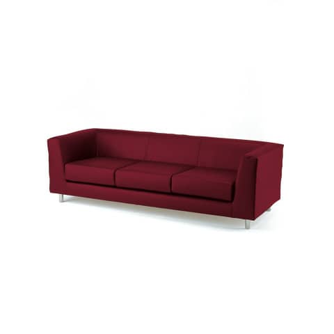 Divano attesa a 3 posti Unisit Quad QD3 schienale fisso – rivestimento tessuto ignifugo bordeaux – QD3/ID