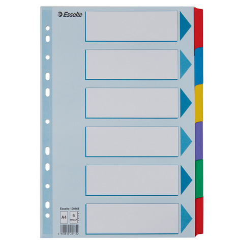 Divisori intercalari Esslete Mylar A4 – conf. 20 ff da 6 tasti colorati cad. – 100168
