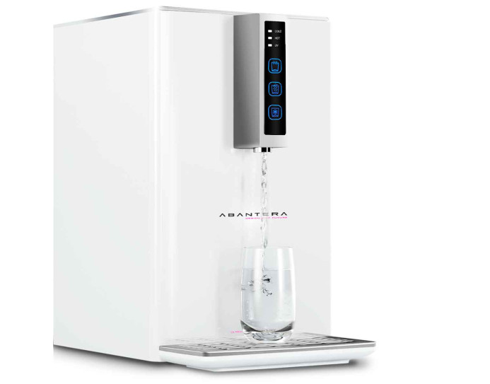 Acqua pura, sempre a portata di mano. Il Purificatore da Tavolo Abantera combina design elegante e tecnologia avanzata per offrirti acqua fredda, calda o frizzante, purificata al 99,99% grazie a ultrafiltrazione e UV. Perfetto per casa, ufficio o attività commerciali.