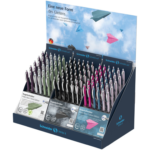 Espositore 120 articoli Schneider Slider Rave di cui 30 refill Slider 755 XB in omaggio assortiti – P989017