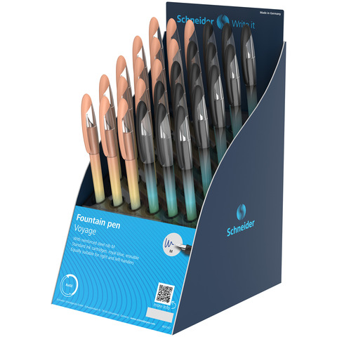 Espositore 30 penne stilografiche cancellabili Schneider Voyage tratto M inchiostro blu royal – P307042