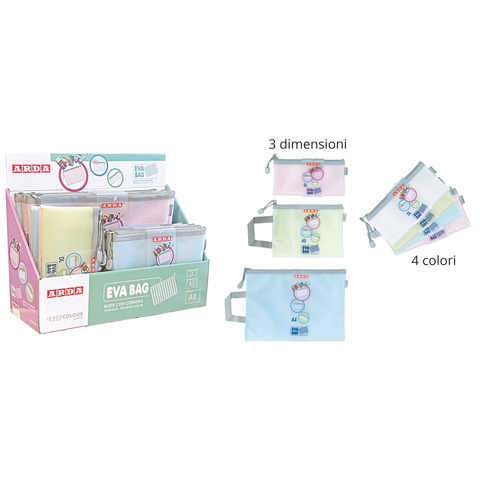 Espositore 36 bustine in EVA con Zip Arda KeepColour Pastel colori assortiti 0264EXP