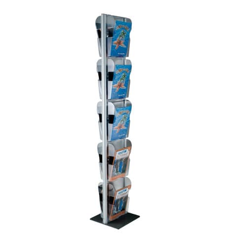 Espositore da terra porta depliant Menhir Tecnostyl A4 in alluminio con 10 scomparti 33x33x173 cm silver MIC103
