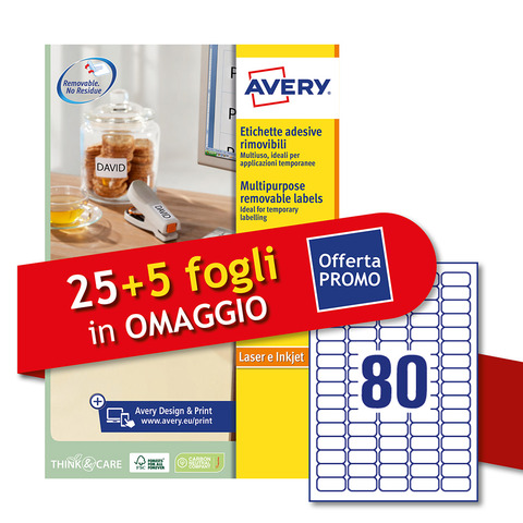 Etichette bianche rimovibili Avery laser/inkjet 80 et./foglio conf.25+5 ff OMAGGIO 35,6×16,9 mm – L4732REV-30P