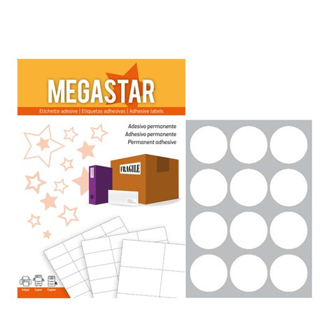 Etichette bianche rotonde con margini Megastar 12 et./foglio conf. da 100 fogli d.60 mm – LP4MS-60