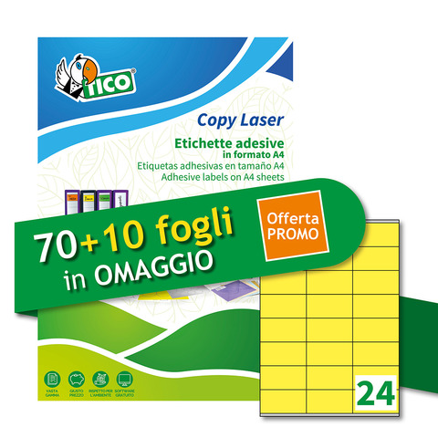 Etichette giallo fluo permanenti Tico laser/inkjet – 70×36 mm 24 et./foglio – conf. 70+10 ff OMAGGIO – LP4FG-7036P