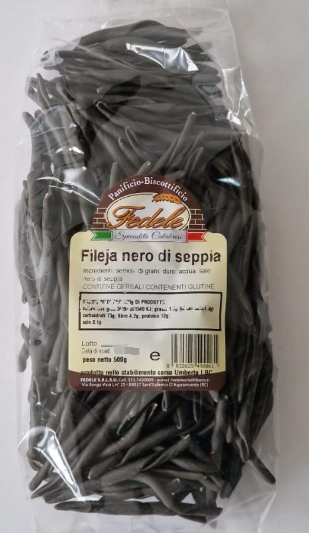 La Fileja al Nero di Seppia é la scelta perfetta per gli amanti dei sapori marini e della cucina italiana. Questa pasta artigianale è realizzata con una miscela di semola di grano tenero e nero di seppia, che conferisce un sapore unico e un colore affascinante.