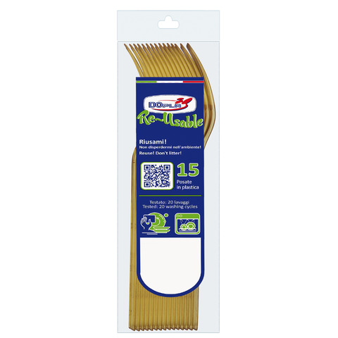 Forchette Dopla Reusable Compact in PS oro 180 mm – conf. 15 pz – 03981