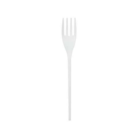 Forchetta in CPLA in busta biodegradabile e compostabile in PLA. Lunghezza: 171 mm. Peso: 3,7 grammi. Contenuto per confezione: 100 pezzi. Temperatura di esercizio: da -18 °C a +80 °C. Utilizzabile in freezer a basse temperature. Certificazioni: TUV INDUSTRIAL – DIN CERTCO. Prodotto PFAS free. Colore: bianco.