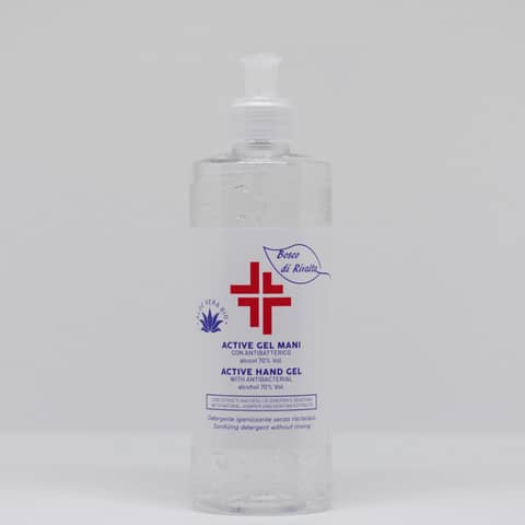 Gel igienizzante mani (alcol 70%) 500 ml con dosatore – Active linea Bosco di Rivalta – profumo di agrumi