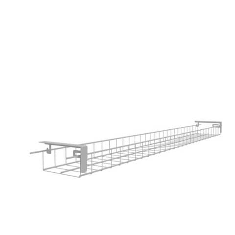 Griglia raccoglicavi per scrivanie Practika con staffe per il fissaggio sottopiano. Colore argento. Dimensioni 150,3×15,5×6,5 cm.