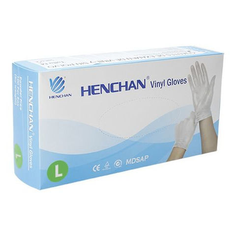 Guanti monouso in vinile. Taglia: L. Confezione da 100 pezzi.