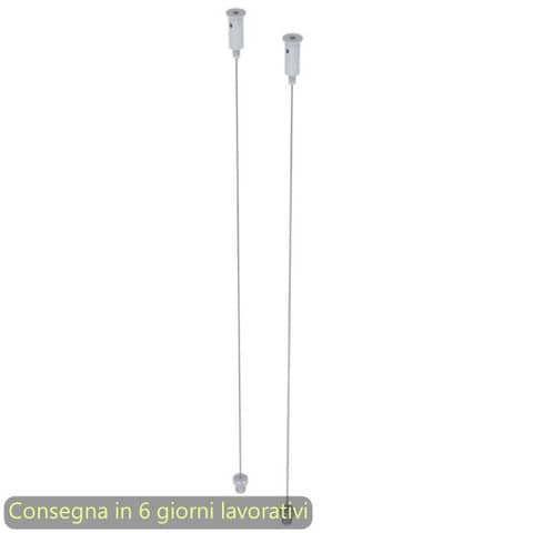 Coppia cavetti per sospensione pannello verticale a soffittolinea Woody zincati. Cavetti L.150 cm(l’altezza pu? essere ridotta tagliando l’eccedenza dei cavetti). Per pannelli L.120/140/160×40 cm. Imballo in cartone riciclato a tutela dell’ambiente. Produzione certificata conforme procedure UNI EN ISO 9001.