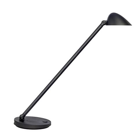 Lampada da tavolo a led Unilux Jack, colore nero, in ABS. Una lampada dal design semplice ed elegante con la calotta di forma ellittica che amplia la diffusione della luce sulla superficie di lavoro. Compatta ed articolata si pu? perfettamente utilizzare su qualsiasi scrivania. Dimmer a sfioramento sulla base che regola l’intensit? della luce (4 posizioni) e la temperatura del colore (3 posizioni) che corrispondono alle diverse attività : relax (2900K), lettura (3.500K), lavoro (4.000K). Porta USB. Lunghezza cavo 1,9 m. Led 6W integrato (non sostituibile).