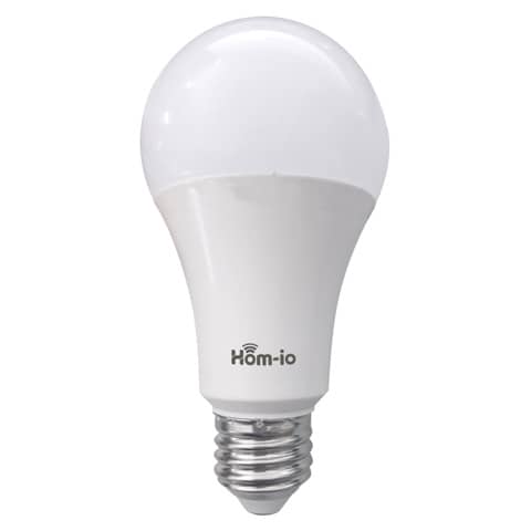 Lampadina LED Smart WiFi Luce bianca, regolabile da luce calda a luce fredda. Controllo remoto su Smartphone. Luce dimmerabile, bianco da 2700 K a 6500K. Alto risparmio energetico. Accensione e spegnimento programmabile, scenari programmabili su App Hom-io. Accensione istantanea. Rispetta l?ambiente: non contiene Mercurio.