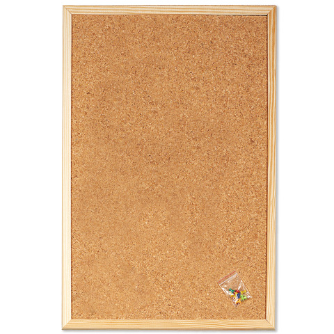 Lavagna in sughero con cornice in legno naturale. Completa di spilli. Formato 60×90 cm.