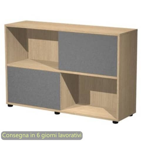 Libreria bassa 120x35xH.79 cm con 2 ante scorrevoli struttura rovere Blade Artexport ante antracite – 17066/CT