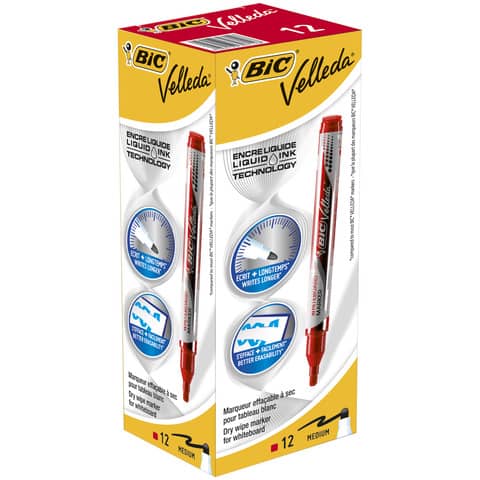 Pensati per chi vuole realizzare presentazioni vivaci e di grande impatto, BIC ha sviluppato i pennarelli BIC Velleda Liquid Ink con un inchiostro liquido che – ancora più radioso. L?inchiostro liquido – progettato per offrire una scrittura fluida e dura più a lungo. L?inchiostro a base di alcol – praticamente inodore. Inoltre, offre una migliore cancellabilit? sulle lavagne anche dopo diversi giorni.