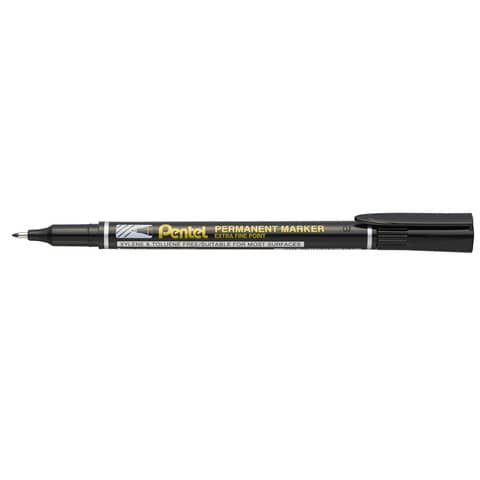 Marcatore permanente con punta extra fine e fusto slim in plastica. Adatto a tutte le superfici. Cappuccio quadrato con clip che impedisce al marcatore di rotolare. Tratto 0,6 mm, colore nero. Confezione da 12 pezzi.