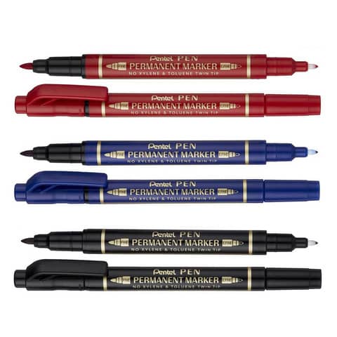Marcatore con inchiostro permanente e resistente doppia punta, conica fine e media. Le punte sono flessibili e permettono una variazione dello spessore del tratto a seconda della pressione esercitata. Inchiostro permanente resistente all’acqua e alla luce ad asciugatura rapida. scrive su quasi tutte le superfici come plastica, cd, metallo, vetro, legno, nastro adesivo.