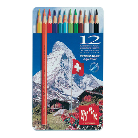 Matite colorate acquarellabili Prismalo, ideali per disegno artistico, illustrazioni, grafica e insegnamento del disegno. Legno di cedro di prima scelta, certificazione FSC? . Mina acquerellabile fine e resistente, diametro 2,95 mm, eccellente resistenza alla luce. Fusto esagonale con capsula, codice colore serigrafato. Ideali per diverse tecniche: acquerello, lavis, tratteggio, tecniche miste. Scatola di metallo composta da 12 colori assortiti.
