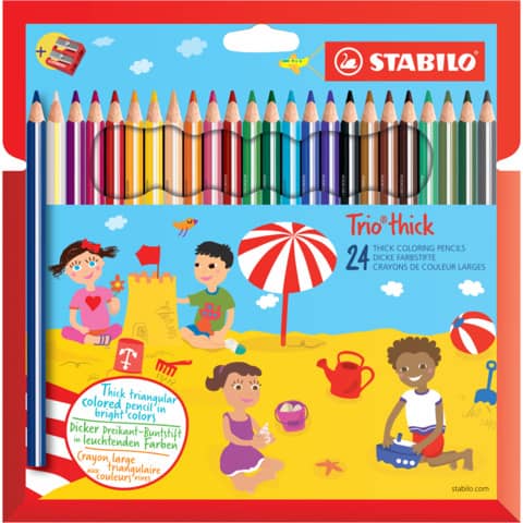STABILO Trio thick sono matite colorate ergonomiche con fusto grosso, triangolare ed ergonomico per un’impugnatura rilassata. STABILO Trio thick sono studiate appositamente per non affaticare la mano ed imparare a colorare con la corretta impugnatura. Grazie alla ricca applicazione di colore e all’ampiezza del tratto di 4,2 mm sono ideali per i piccoli artisti che esprimono tutta la loro creativit? con i colori.
