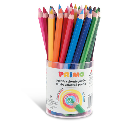 Matite colorate esagonali Primo Jumbo – 5,5 mm in barattolo 36 pezzi – 12 colori assortiti – 521B36