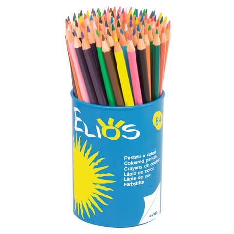 Matite colorate ELIOS in barattolo. Brillanti come il sole. Creare in libertà ha i colori dell’arcobaleno con il pratico Elios! Pastello esagonale verniciato del colore della mina del diametro di 2,8 mm, Elios – facilissimo da temperare. Confezione: 84 colori. Colore: assortiti.