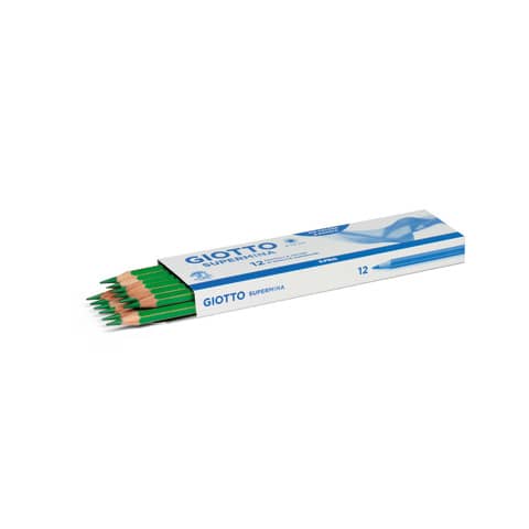 Matite colorate Giotto SUPERMINA VERDE. Il top della matita Giotto. Ottima resa e lunga durata, Giotto Supermina, con la sua mina extra-large di qualità superiore 3,8 mm, – il top dei pastelli Giotto, con i suoi 38 colori vivaci e brillanti, estrema ergonomia e facile da temperare. Colore: verde. Confezione da 12 pezzi.