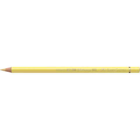 Matite Colorate per artisti Polychromos permanenti di alta qualità . Pigmenti pregiati e brillanti, eccellente stabilit? alla luce. Tratto morbido e intenso. Mine pastose a base di cera e resistenti all’acqua, non sbavano. Resistente alla rottura grazie al sistema brevettato SV. Fusto in legno di cedro rotondo, Mina extra grossa 3.8 mm a base di olio e priva di acidi. Vernice ecologica a base d’acqua. Colore giallo paglierino.