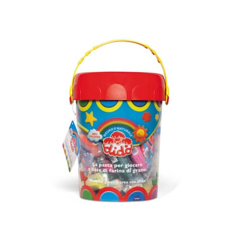Maxi vaso espositore di pasta modellabile Did? con maniglia e coperchio a pressione. Dimensioni: – 21 cm x H.20 cm. Studiato per la vendita dei salsicciotti sfusi. Composto da 100 salsicciotti assortiti nei colori seguenti: bianco, giallo, verde, rosa, azzurro, magenta, rosso, verde fluo, azzurro fluo, arancione, viola e nero. Ideale per giocare e creare divertendosi.