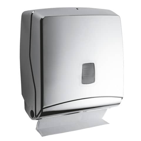 Dispenser di carta asciugamani mini. Versione standard. Altezza d?installazione consigliata 140 cm, dal pavimento alla parte inferiore del distributore. Sistema di erogazione degli asciugamani manuale.