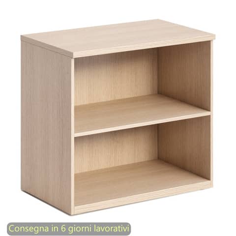 Il prodotto – allestito a giorno ed – realizzato in materiale bilaminato nobilitato melaminico. Top di spessore 25 mm, antigraffio ed antiriflesso. Fianchi e ripiani di spessore 16 mm, regolabili in altezza con sistema di bloccaggio nella posizione desiderata. Rifiniti posteriormente nello stesso colore della struttura possono essere utilizzati come pareti divisorie. Piedini regolabili in altezza per un perfetto livellamento sul pavimento.