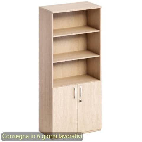 Mobile alto completo di ante basse con serratura. Colore rovere. Composto da 2 vani chiusi e 3 a giorno. Dietro rifinito dello stesso colore della struttura. Con 3 ripiani regolabili e 1 fisso(il secondo dal basso) e piedini livellabili in altezza. Dimensioni: 80x46xH.181,8 cm. Produzione interna Artexport della parte in legno certificata Iso 9001. Certificazioni FSC e PEFC. Imballi totalmente in cartone per un facile riciclo, a basso impatto ambientale.