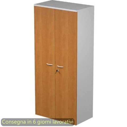 Mobile alto della linea Presto, una linea operativa contemporanea progettata per un utilizzo quotidiano ed intensivo in grado di soddisfare tutte le esigenze funzionali ed estetiche. La gamma completa degli elementi permette di allestire ogni ambiente di lavoro, personalizzandolo con stile. Scrivanie con dimensioni conformi alle normative sulla sicurezza dei posti di lavoro in ufficio. Dimensioni L. 80 x P. 44 x H. 180 cm. Top sp. 22 mm. Struttura, ante e ripiani sp. 18 mm. Tre ripiani regolabili in altezza con un sistema di bloccaggio nella posizione desiderata. Ante in melaminico con una pratica serratura. Il mobile, rifinito posteriormente nello stesso colore della struttura, pu? essere utilizzato come parete divisoria. Dotato di piedini regolabili in altezza per un perfetto livellamento sul pavimento. Imballi in cartone riciclato alto spessore a tutela dell?ambiente. Produzione certificata conforme alle procedure UNI EN ISO 9001. Certificazioni FSC e PEFC. Struttura color grigio alluminio, ante di colore noce chiaro.